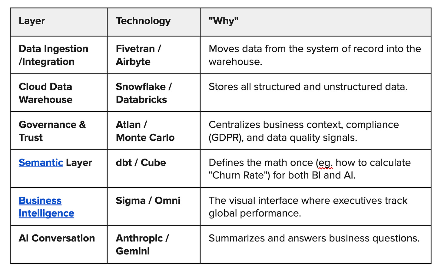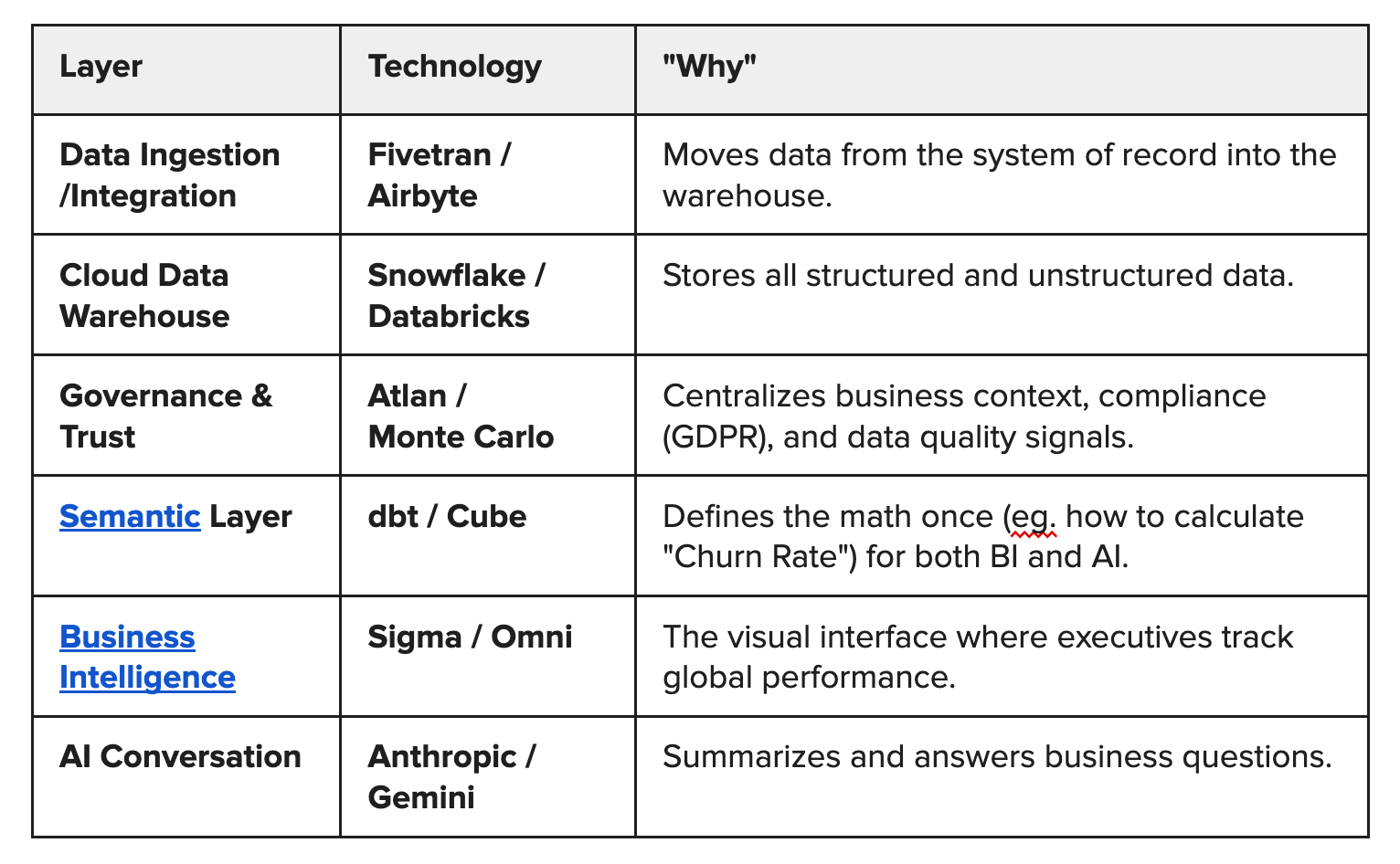 Unified Semantic Layer: dbt Fusion engine to define metrics once, ensuring the AI and the CFO are always looking at the same numbers.