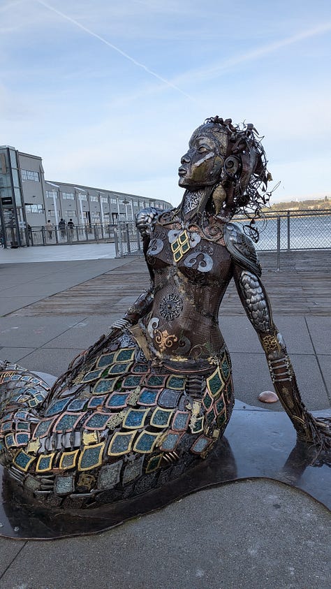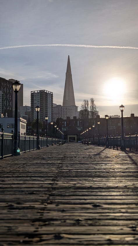 Friday: Golden hour at the Embarcadero and the Mermaid sculpture. Catching up with a student visiting SF and sharing our love for the city.
