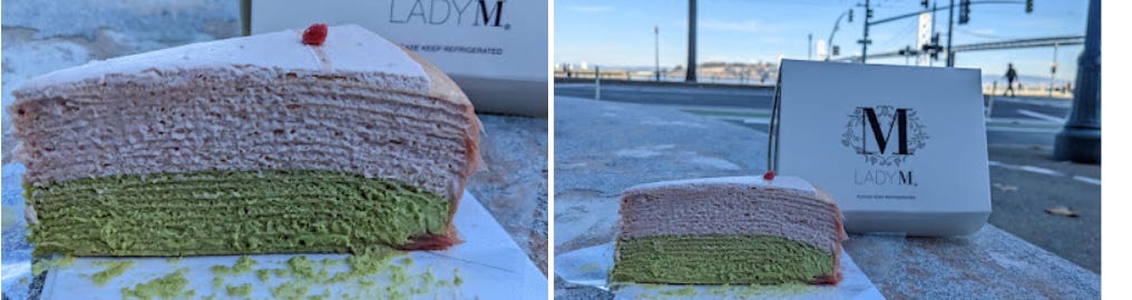 Joy is a slice of Matcha mille crepe cake by Lady M :)
