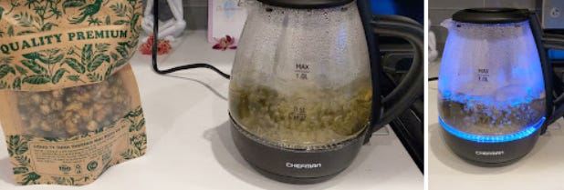 Joy is buying a new tea kettle and enjoying herbal tea