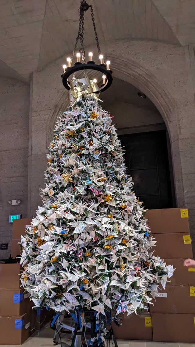 The World Tree of Hope is the largest origami holiday tree in the world, decorated with over 17,000 origami cranes and stars, each hand-folded and inscribed with wishes, hopes, and dreams for the future of the world.Do you have a wish for the world?