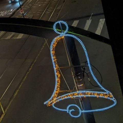 It was beautiful to be home and walk in to see the 3rd street lights and bell holiday decorations. Inspired :)