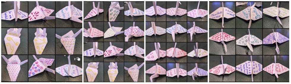 I am grateful for the opportunity to be a part of the Grace Cathedral World Tree of Hope decorations. I got to volunteer to make 5 and decorate 50 origami cranes .. truly living my mindful moment - you are an artist and let your colors show.