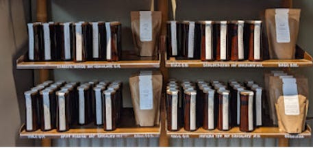 Joy is buying a bag of Mission Hot chocolate from Dandelion Chocolate