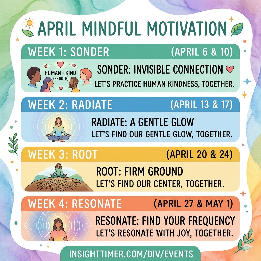 I invite you to join us for our Live Mindful Motivation online sessions every Monday and Friday. These 15-minute gatherings are designed to be a “soft landing” for your week— no cameras, no need to speak, just a space to breathe and be.